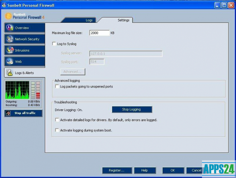 O Sunbelt Kerio Personal Firewall é um firewall para proteger seu computador pessoal contra vários ataques de hackers e outros vírus indesejados provenientes da World Wide Web.